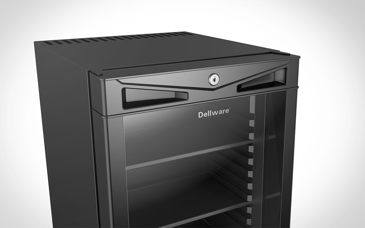 小型商用冷柜主要使用與酒店等公共環(huán)境,產(chǎn)品體積輕巧且需要與酒店櫥柜、床頭柜等相結(jié)合,采用嵌入式方式進(jìn)行安裝。整體的造型風(fēng)格需要現(xiàn)代、簡(jiǎn)潔,符合酒店通用環(huán)境。產(chǎn)品的前門需要滿足左右兩個(gè)方向都可以自由打開,前面板設(shè)計(jì)為玻璃可視門和發(fā)泡門體兩種,可以充分的滿足不同使用環(huán)境的要求??凼植糠衷O(shè)計(jì)與安全鎖結(jié)合,體現(xiàn)一體化設(shè)計(jì)風(fēng)格,達(dá)到功能與造型的統(tǒng)一。