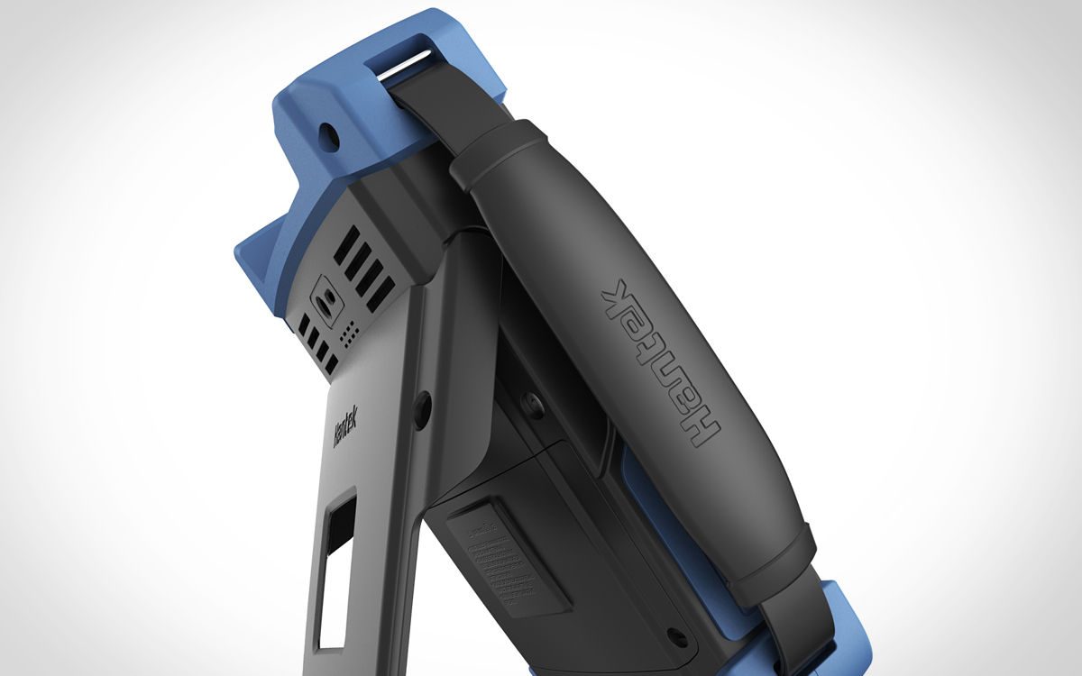 本款產(chǎn)品為便攜手持設(shè)備,我們?cè)O(shè)計(jì)首先產(chǎn)品本身使用環(huán)境可能比較惡劣,機(jī)器需要正常運(yùn)轉(zhuǎn)就必須具備可靠的防護(hù)。所需要的防護(hù)等級(jí)要達(dá)到IP65,因此在設(shè)計(jì)時(shí)要充分考慮產(chǎn)品的防護(hù)特性,這在外觀也有所體現(xiàn)。我們將產(chǎn)品的四周用抗沖擊的橡膠進(jìn)行包裹,側(cè)面接口的位置都配備了橡膠堵頭。整體厚重結(jié)實(shí)的形象也比較符合這類產(chǎn)品的既定語(yǔ)言和感覺(jué)。其次在人機(jī)關(guān)系方面需要重點(diǎn)考慮整機(jī)的尺寸及重量還有按鍵的分布及形式,因?yàn)槭鞘殖衷O(shè)備,在人機(jī)設(shè)計(jì)時(shí)要充分考慮人手甚至單手操作的便利性。機(jī)器根據(jù)屏幕大小和不同的操作方式分為兩個(gè)型號(hào),同系列產(chǎn)品在語(yǔ)言和設(shè)計(jì)上的家族感也得到充分的體現(xiàn)。