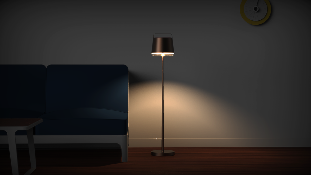 燈具除了光源之外,都具有燈罩與支撐部分。如果具備一定的條件,所有燈具之間或者說某些燈具之間一定可以實(shí)現(xiàn)相互轉(zhuǎn)化,基于這個(gè)問題的探索才有了“燈罩”。落地?zé)?,臺燈,夜燈不同的使用場景不同功能可以用相同的部件來實(shí)現(xiàn)。所需要的只是將支撐桿的部分變?yōu)榭缮炜s以調(diào)節(jié)光源與底座之間的高度差,從而調(diào)節(jié)光的范圍來實(shí)現(xiàn)不同燈具之間的轉(zhuǎn)化。由于產(chǎn)品可用于不同的場景,客廳,餐廳,臥室等,所以在產(chǎn)品頂部設(shè)計(jì)了把手。
