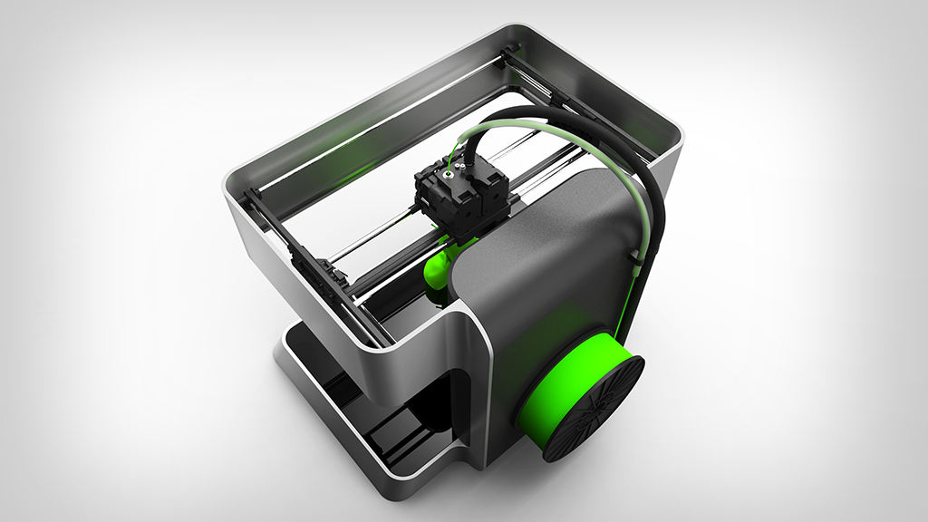 這款桌面級3D打印機主要針對工業(yè)類設計師、藝術類設計師、手辦達人、機械類設計師、建筑師、科技極客。0.1~0.4mm四檔精度可選擇,加熱至120°C只需要4秒,耗材為PLA。由于所面對的是對產(chǎn)品本身及體驗非常挑剔的一類人群,所以設計在表達完善設備的可靠耐用這類基本屬性的基礎上還要充分考慮到品質(zhì)感及設計感的傳達。大面積的金屬材質(zhì)的使用以及金屬與黑色橡膠漆的搭配也突顯了這類桌面設備應該有的品質(zhì)感。因為打印時需要充分通風,因此設計中部內(nèi)收。整體造型風格簡潔流暢,語言簡單易懂。